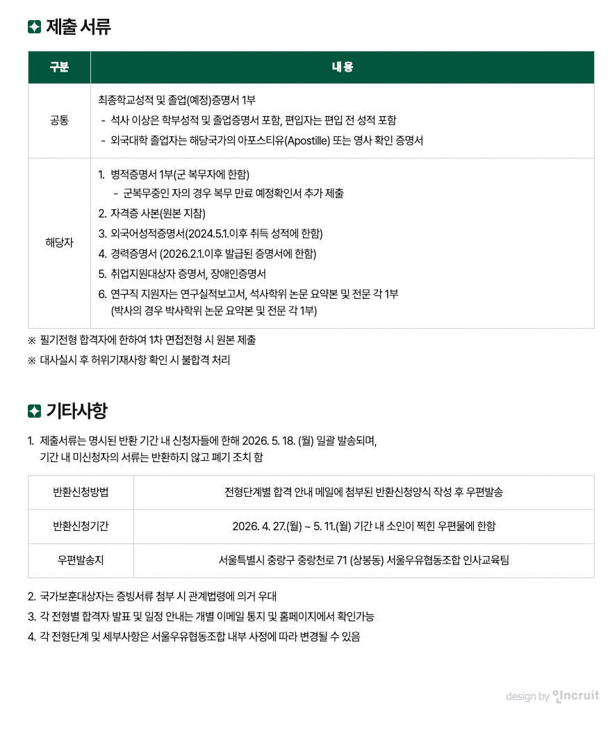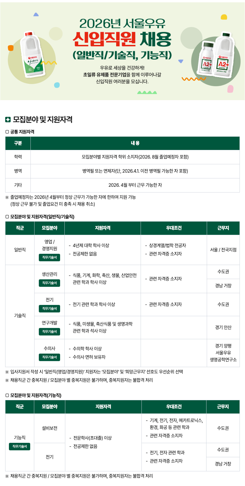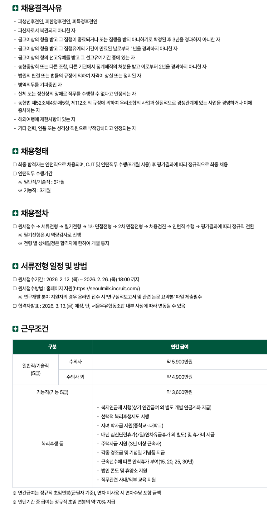 4. 각 전형단계 및 세부사항은 서울우유협동조합 내부 사정에 따라 변경될 수 있음